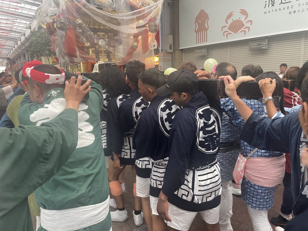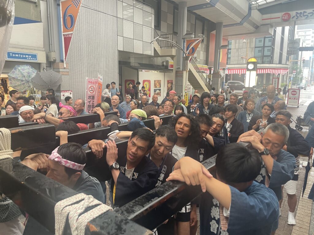 弊社社員は「十七番」の法被を着て、全力で御神輿を担がせていただきました!!